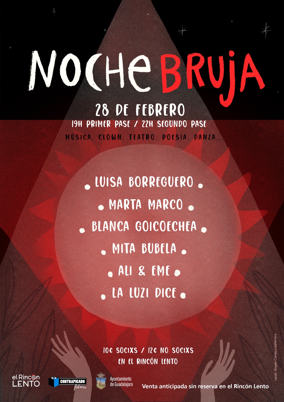 Con la presentación de Luisa Borreguero y las actuaciones de Marta Marco (narración oral), Blanca Goicochea (danza), Mita Bubela (teatro / monólogo), ALI & EME (teatro / performance) y La Luz dice (música).